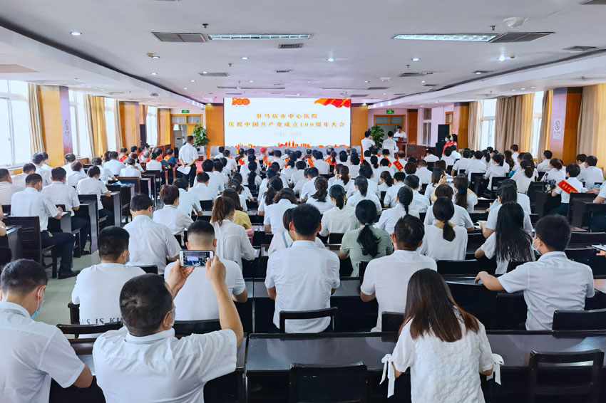 6月25下午,駐馬店市中心醫(yī)院隆重召開慶祝中國共產(chǎn)黨成立100周年暨“兩優(yōu)一先”表彰大會。300余名黨員干部參加了會議。黨委書記、院長楊長虹作重要講話,黨委副書記米云鵬主持會議。