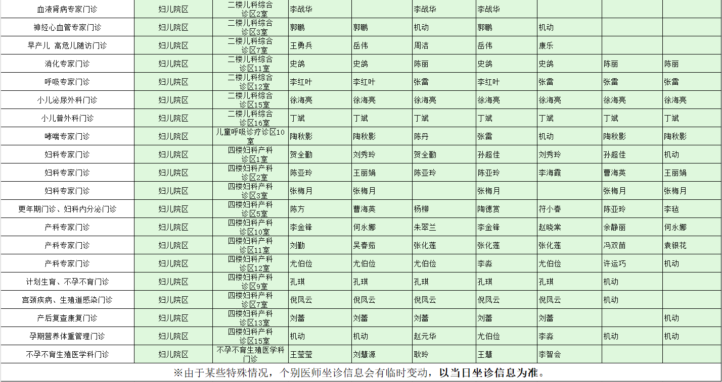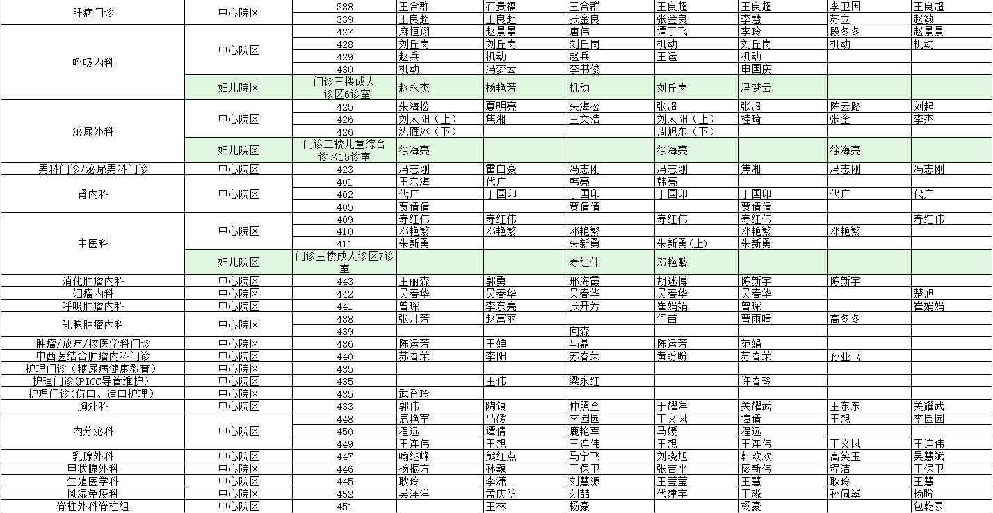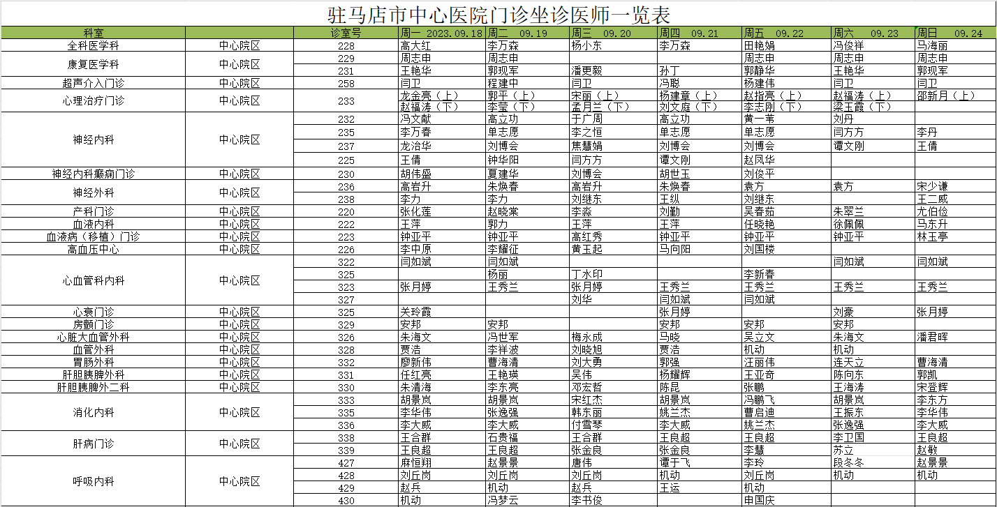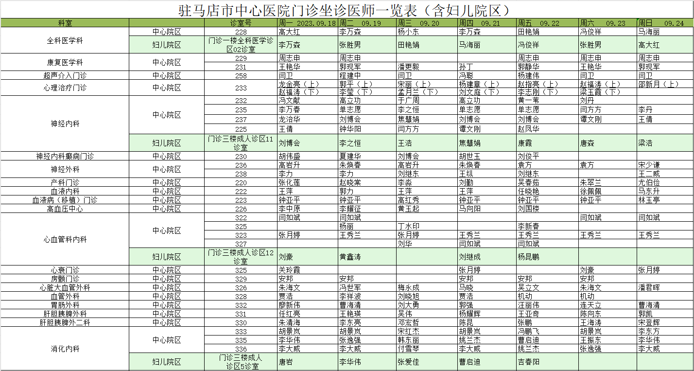駐馬店市中心醫(yī)院門診坐診信息一覽表(含婦兒院區(qū))