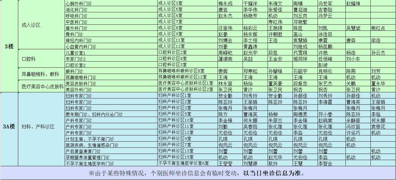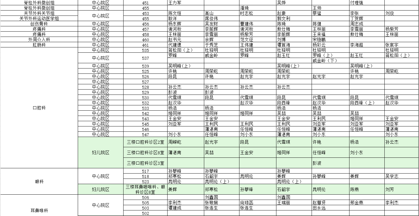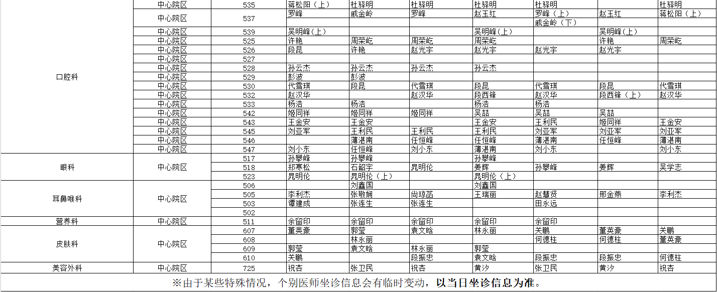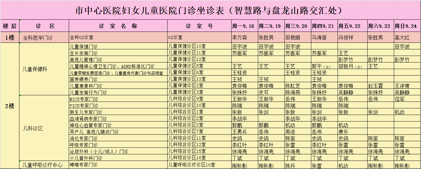 駐馬店市中心醫(yī)院門診坐診信息一覽表(含婦兒院區(qū))